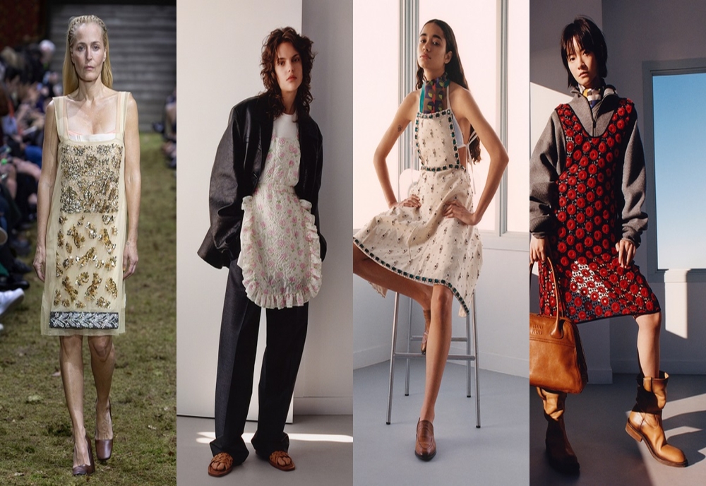 Tendința modei șorțurilor, condusă de Miu Miu, coincide și cu ascensiunea așa-numitelor „soții tradiționale” – un număr tot mai mare de femei care renunță la locurile de muncă și revin la rolul de gospodine, așa cum se practica în anii ’50 și ’60.